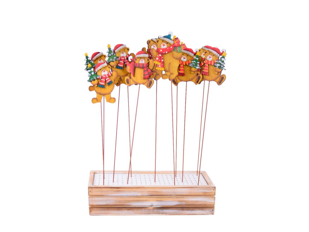 Zápich s medvědem XMAS BEAR, dřevo, hnědá/béžová, 26x36x10cm4|Ego dekor
