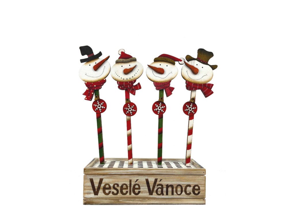 Zápich sněhulák, dřevo, červená/zelená, 28x34x11cm, displej 24ks|Ego dekor