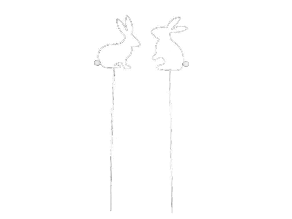 Zápich zajíc, kov, bílá, 8x48x1,5cm|Ego dekor