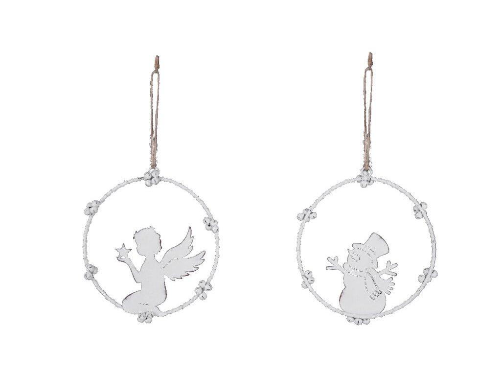 Závěs anděl/sněhulák v kruhu, bílá, 15x16x1cm|Ego dekor