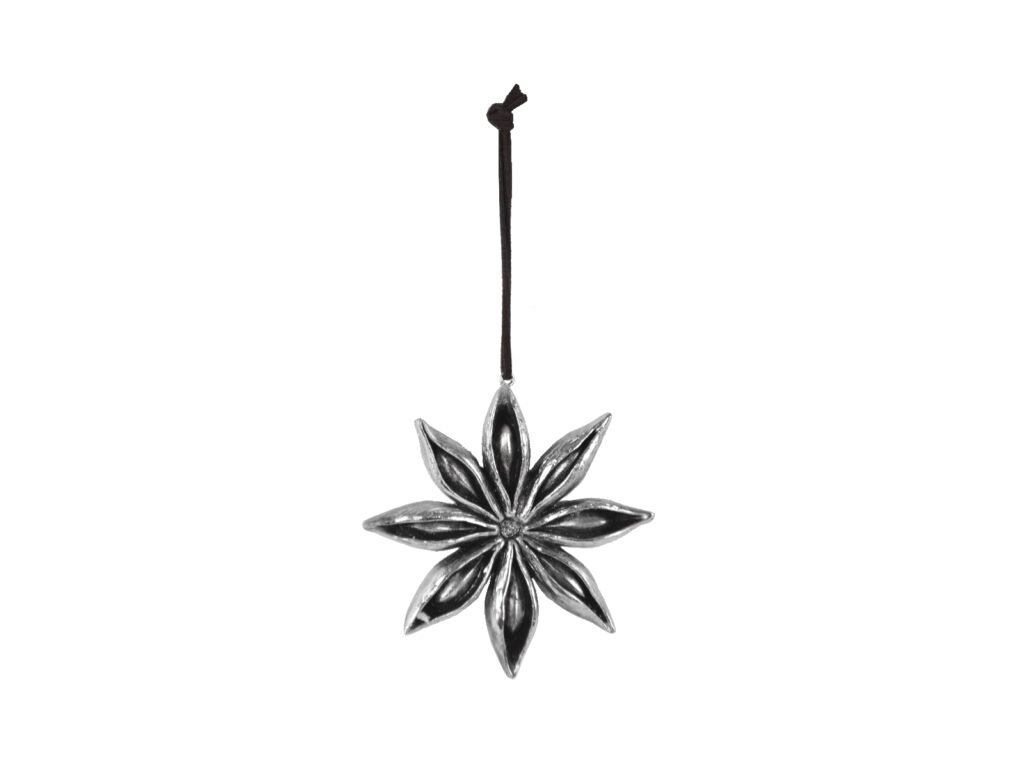 Závěs badyán, kožený provázek, 9cm, stříbrná|Ego dekor