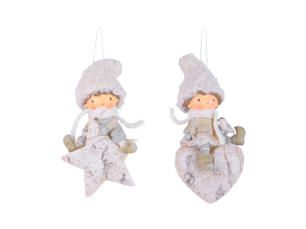 Závěs chlapec/holčička na hvězdě, krémová/sv.hnědá, 6x13x4cm|Ego dekor