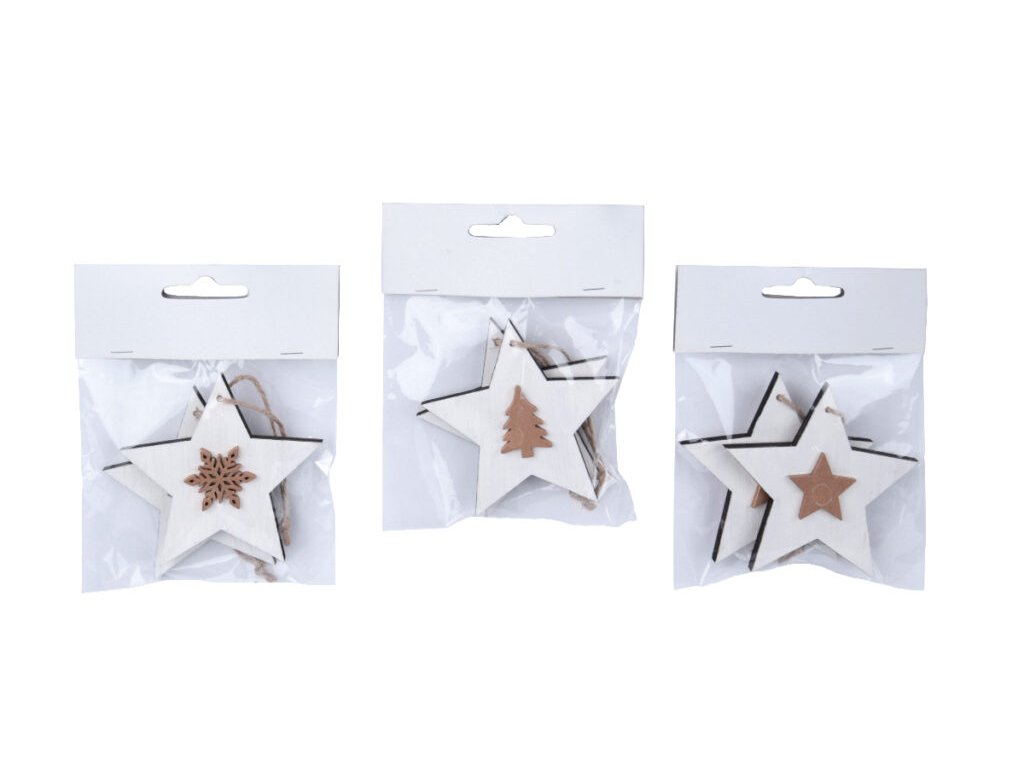 Závěs hvězda, dřevo, bílá/zlatá, 8,5x8,5x0,5cm/S2|Ego dekor