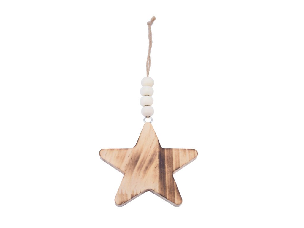 Závěs hvězda, dřevo, natur/krémová, 10x20x1,5cm, ks|Ego dekor