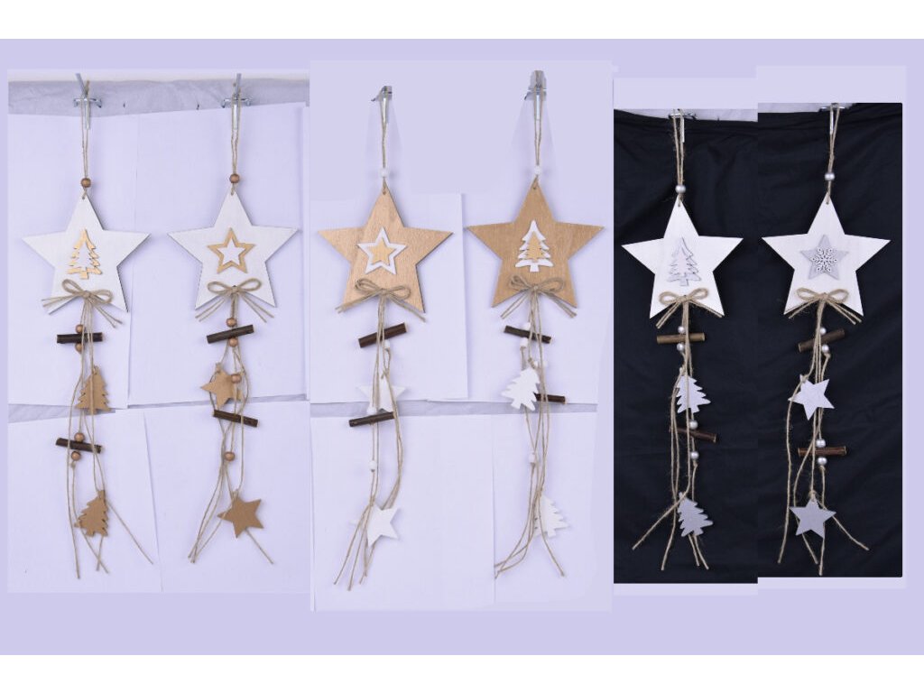 Závěs hvězda COMET, dřevo, bílá/zlatá, 14x43x0,5cm|Ego dekor