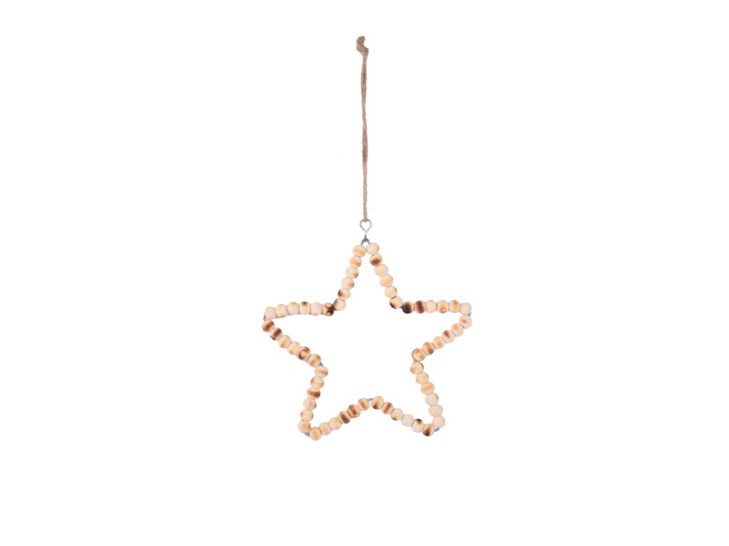 Závěs hvězda s korálky, dřevo, natural, 13x14x0,5cm, ks|Ego dekor