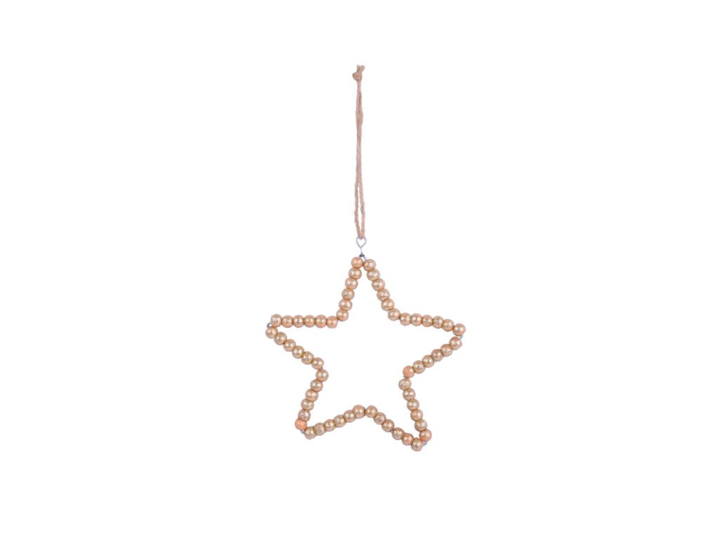 Závěs hvězda s korálky, dřevo, zlatá, 13x14x0,5cm, ks|Ego dekor