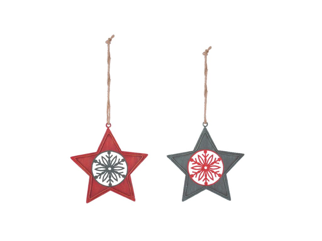 Závěs hvězda s vločkou, kov, červená, 9,5x10x0,1cm|Ego dekor