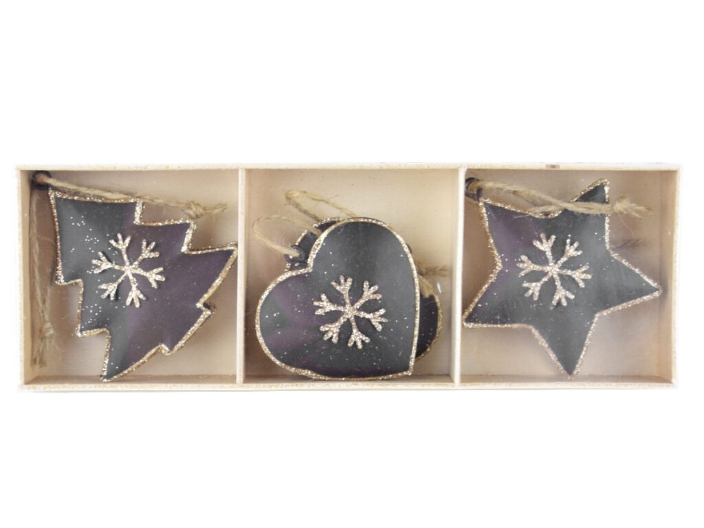 Závěs hvězda/srdce/strom, černá/zlatá, 21,5x3x7,5c|Ego dekor
