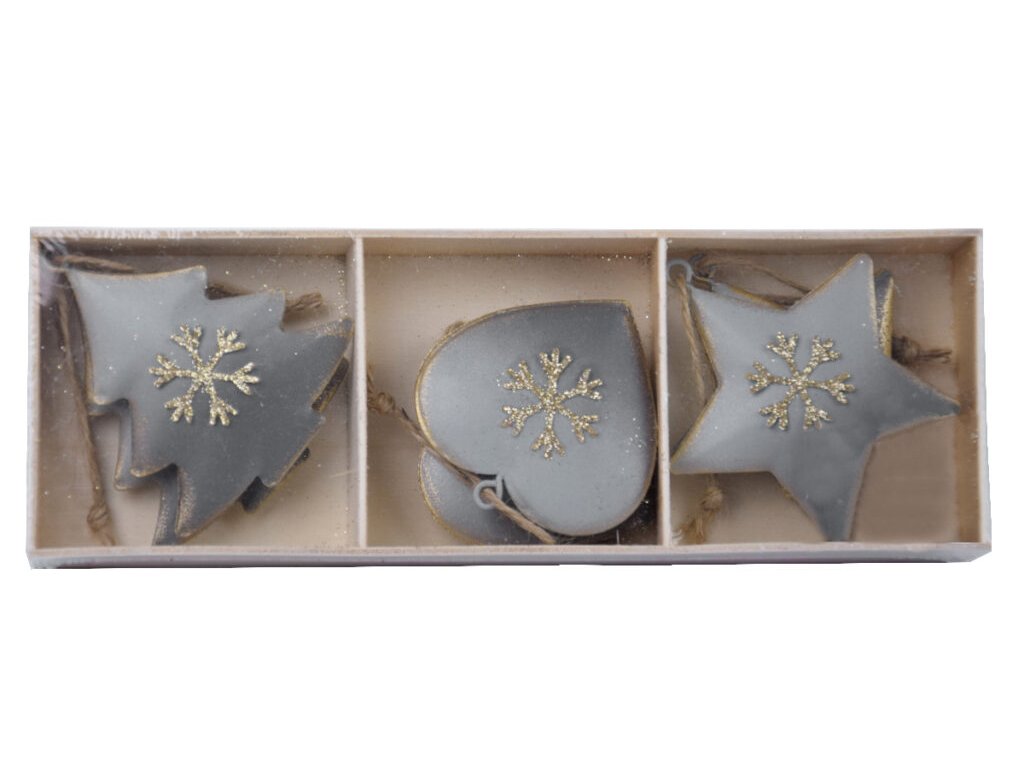 Závěs hvězda/srdce/strom, šedá, 21,5x3x7,5cm, ks|Ego dekor