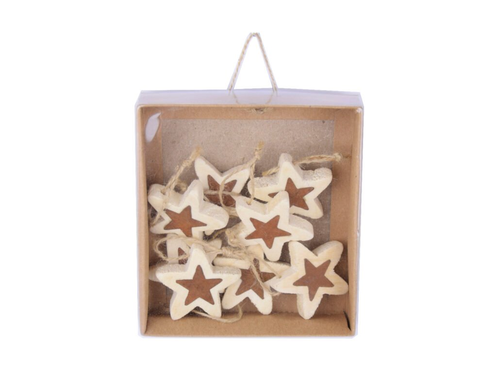 Závěs hvězda SWEETS, dřevo, hnědá, 4x4x1cm, box 8ks|Ego dekor