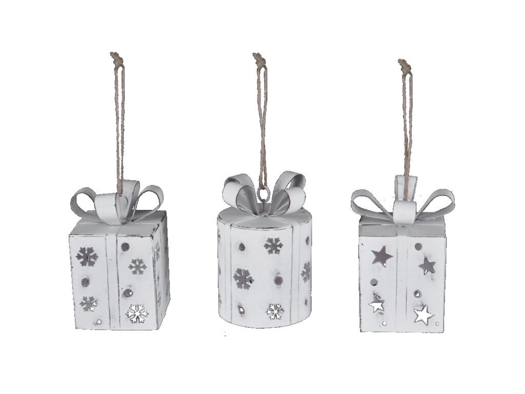 Závěs s patinou Dárek, bílá, 7,5x11x7,5cm|Ego dekor