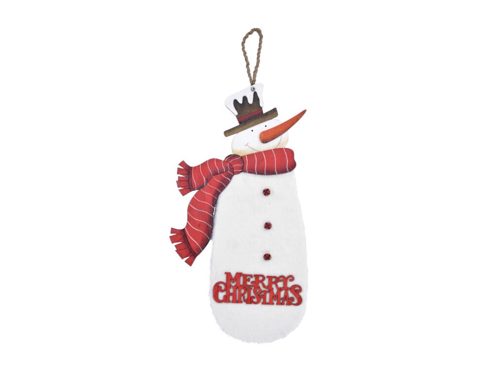 Závěs sněhulák s šálou, bíá/červená, 23x44x1cm, ks|Ego dekor