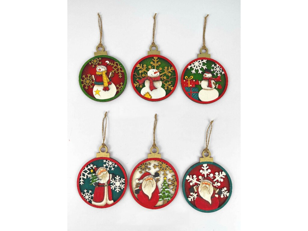 Závěs sněhulák/santa, dřevo, červená/zelená, 11x14x1cm|Ego dekor