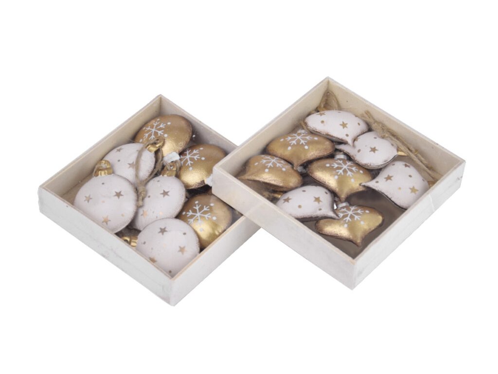 Závěs špička/koule, bílá/zlatá, 11,5x3x11,5cm|Ego dekor