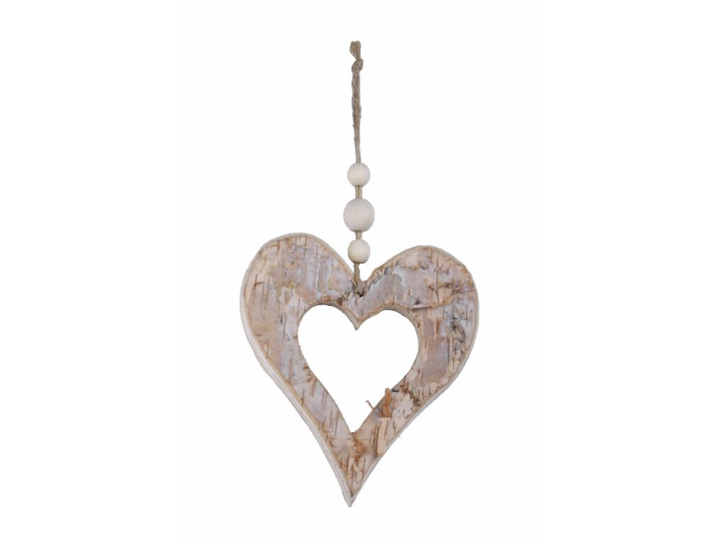 Závěs srdce, březová kůra, přírodní, 15x16x1,5cm, ks|Ego dekor