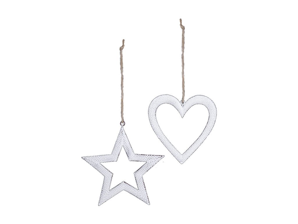 Závěs srdce/hvězda, bílá, 11x11x0,5cm|Ego dekor