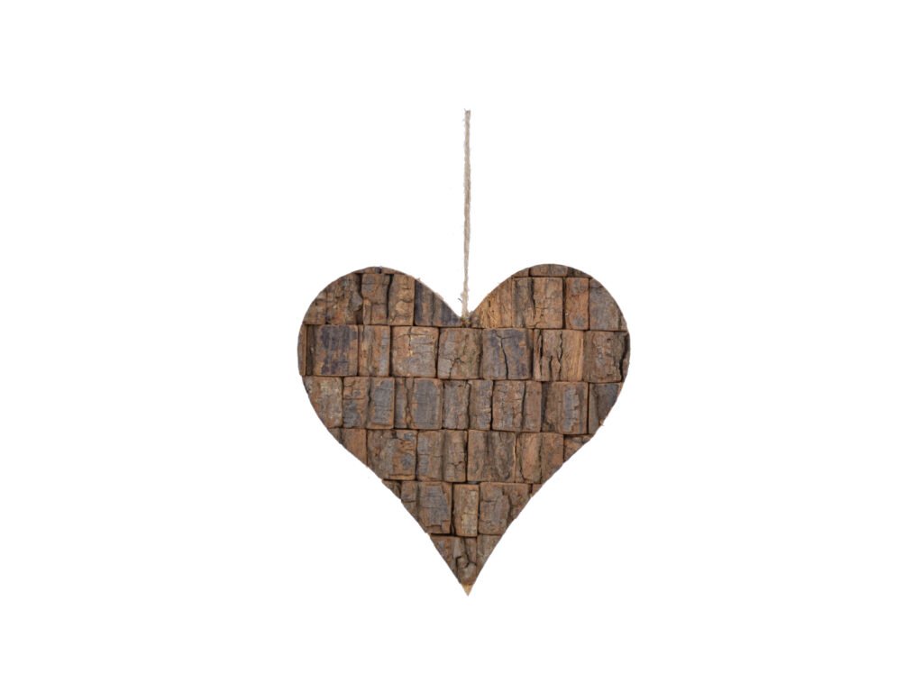 Závěs srdce LINDEN BARK, plné, přírodní, 15x15x1,5|Ego dekor