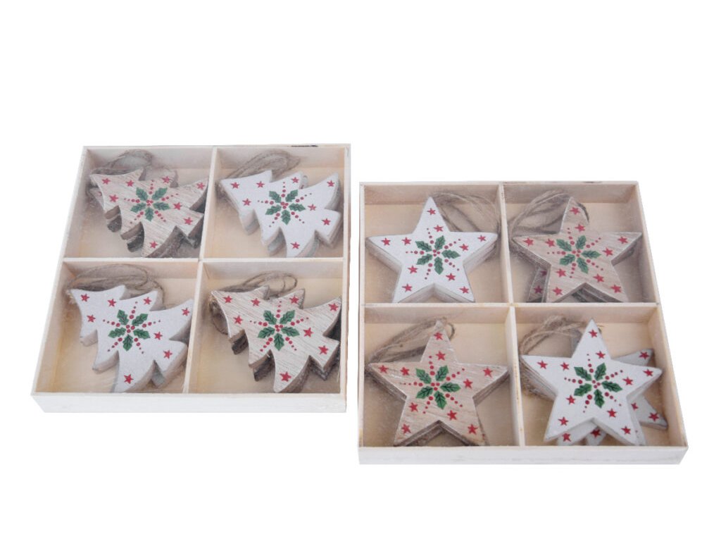 Závěs strom/hvězda, MDF, natur/bílá, 7x8x1cm, box 12ks|2T|Ego dekor