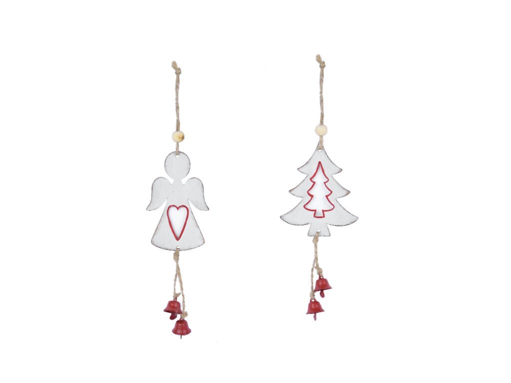 Závěs stromek/anděl se zvonkem, bílá, 6,5x15x1,5cm|Ego dekor