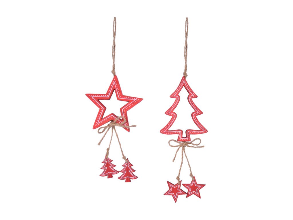 Závěs stromek/hvězda, dřevo, červená, 10x27x1,5cm|Ego dekor