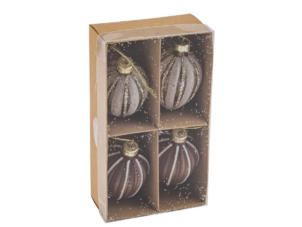 Závěs vejce s glitry, sklo, hnědá, 17x11,5x3,5cm, box 4ks