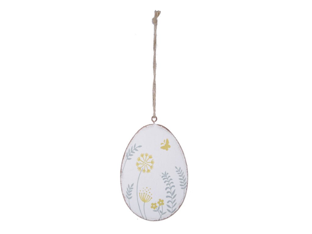 Závěs vejce s květy, kov, bílá, 8,5x11x2cm, ks|Ego dekor