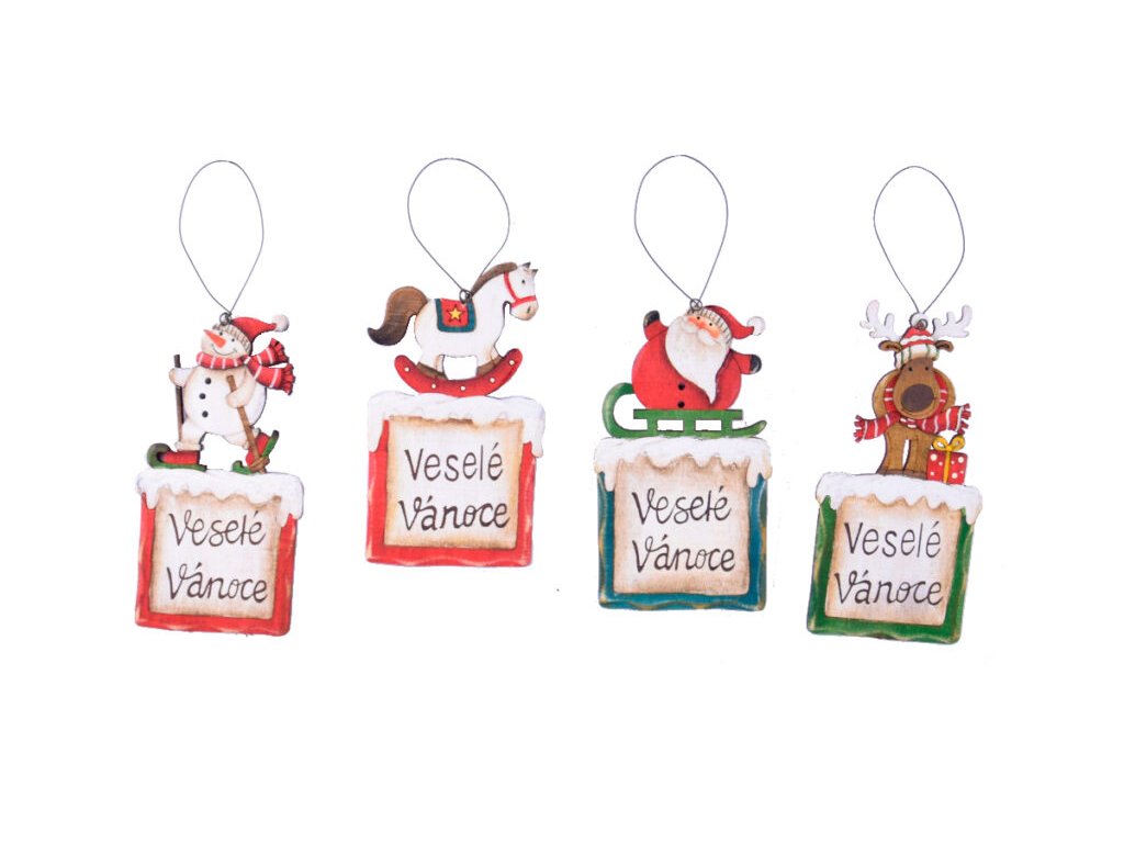 Závěs visačka s ornam. XMAS, dřevo, zel./červ./bílá, 25x37x26cm2|Ego dekor