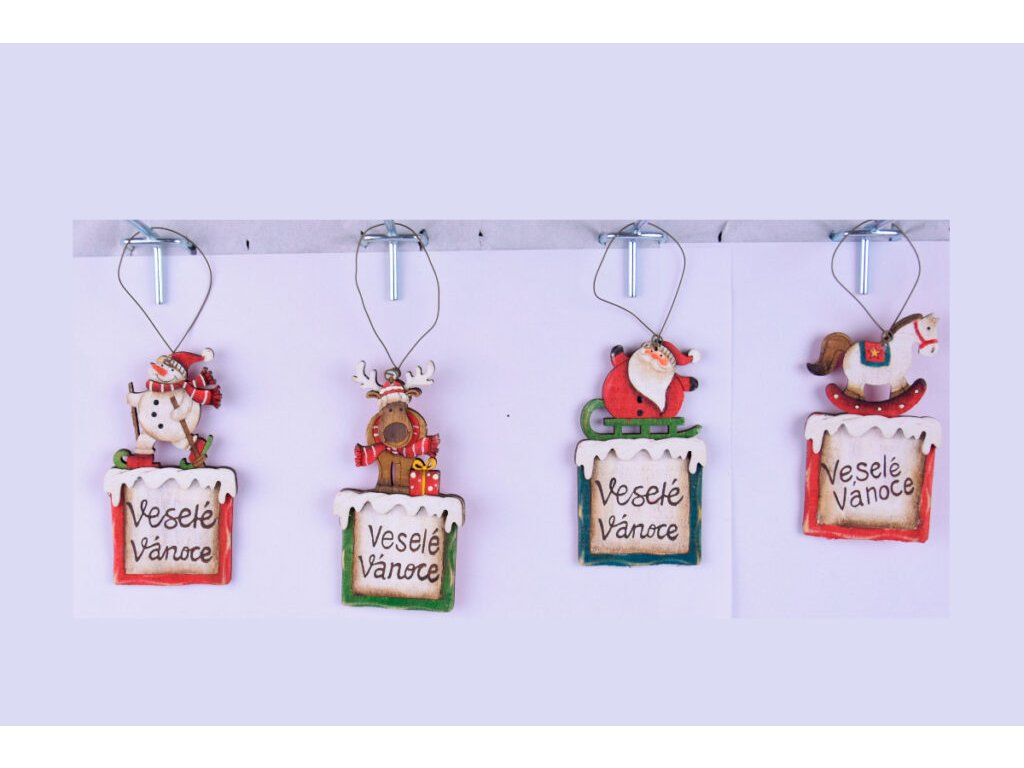 Závěs visačka s ornamenty XMAS, dřevo, zel./červ./bílá, 6x16x0,5cm|Ego dekor